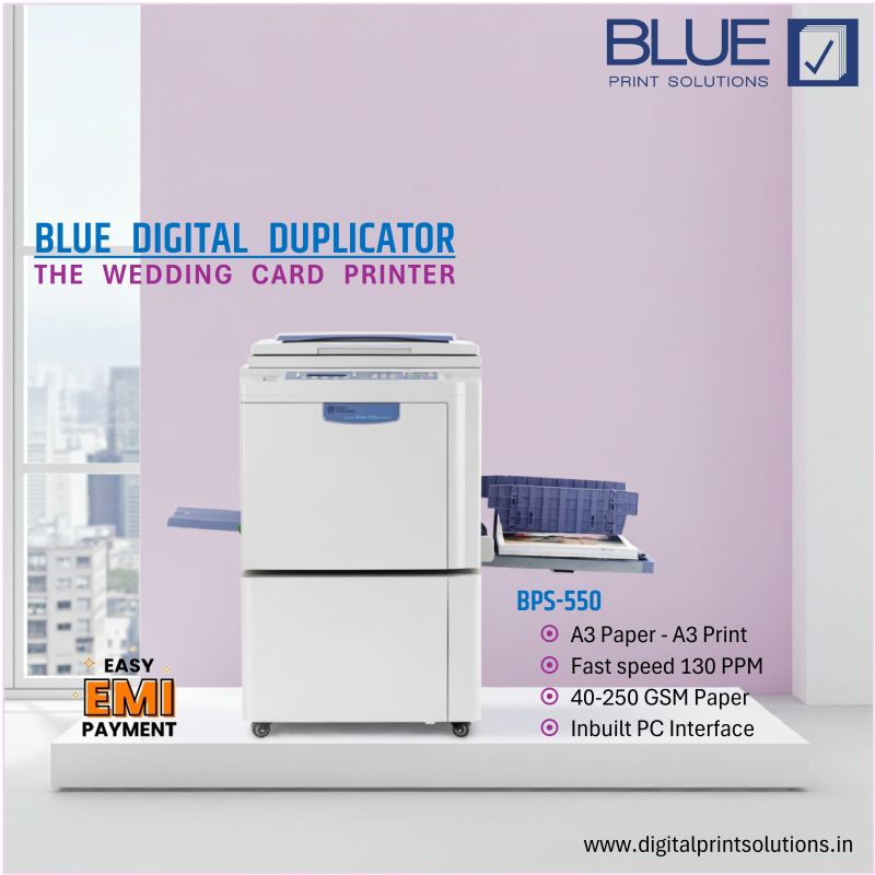 BPS-550 BLUE Digital Duplicatoris the best combination of multi-function, high effeciency and fashion design. Big LCD Display, easy to operate, A3 paper scan, A3 document feed. It is easy to fulfill various printing requirements and realize the best performance on PC connected printing.